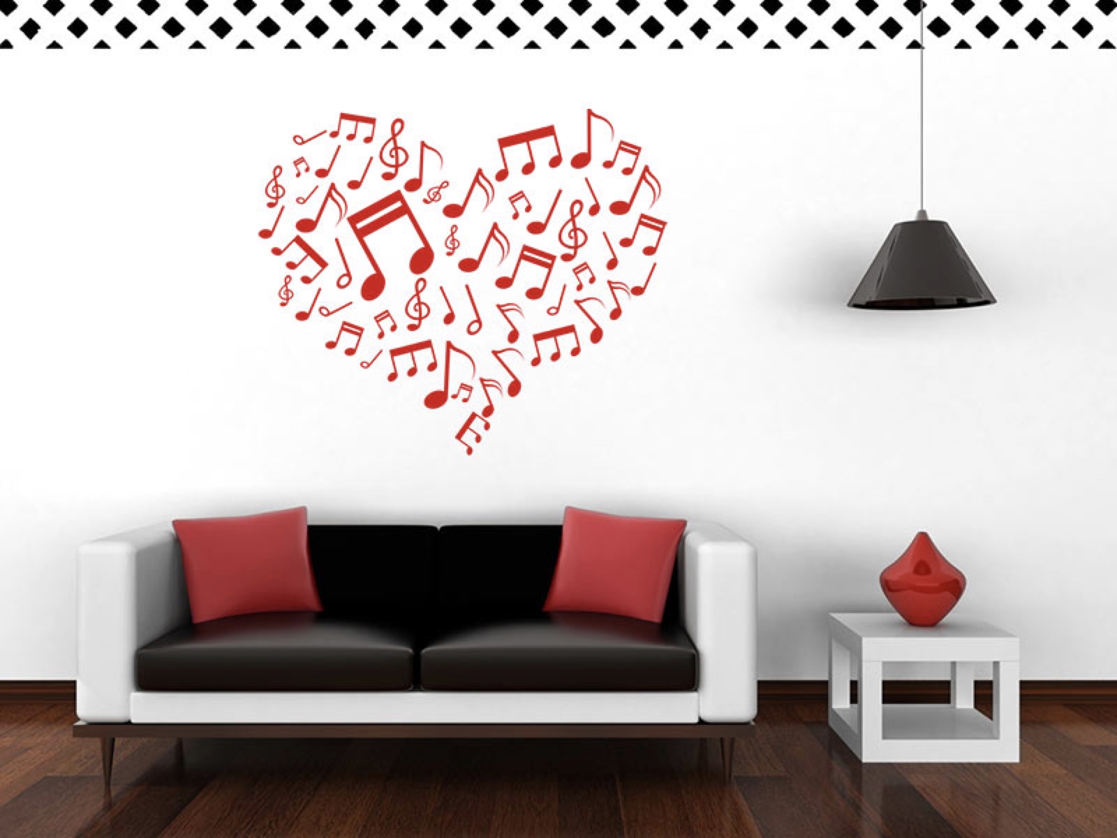 Wandtattoo Musiksymbole Länge von „I love music“ ist 60cm, die anderen entsprechend.