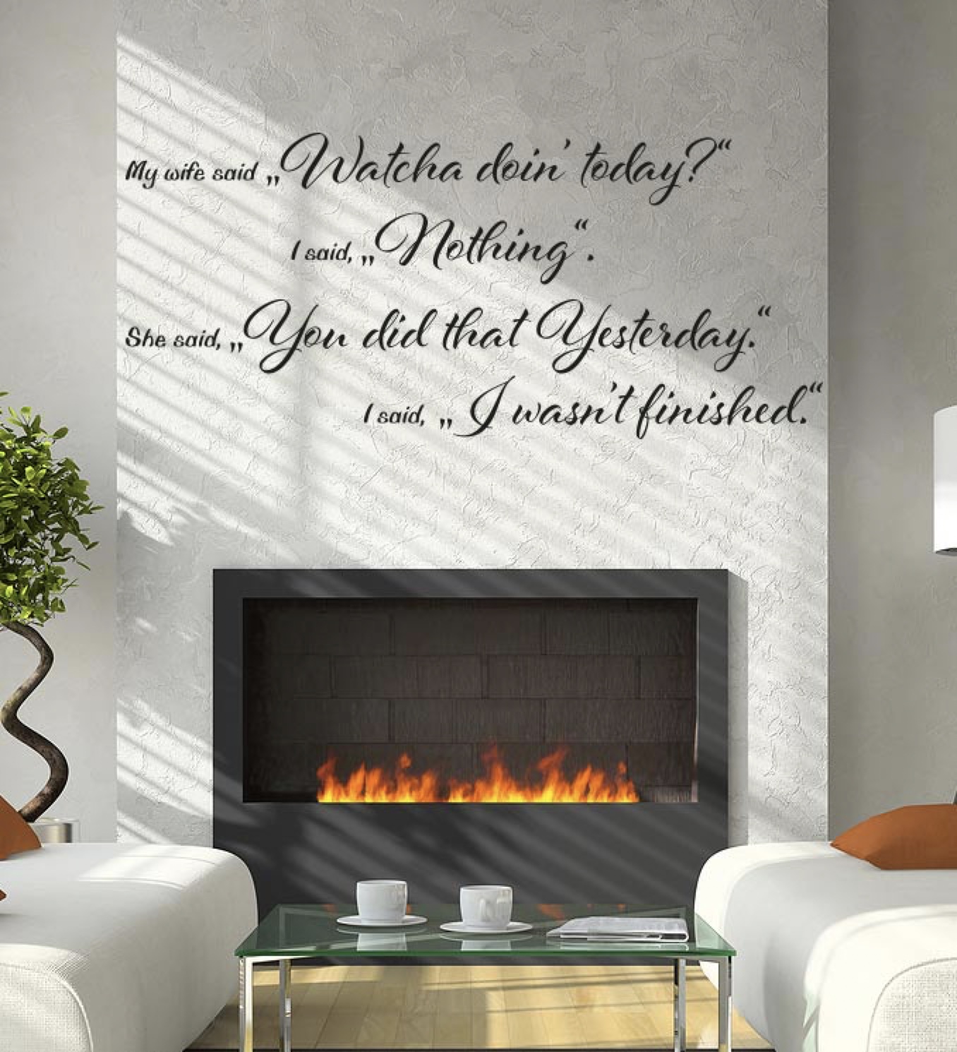 Wandtattoo My wife said: „Watcha doin’ today?“ I said, „Nothing“. She said, „You did that yesterday.“ I said, „ I wasn’t finished.“