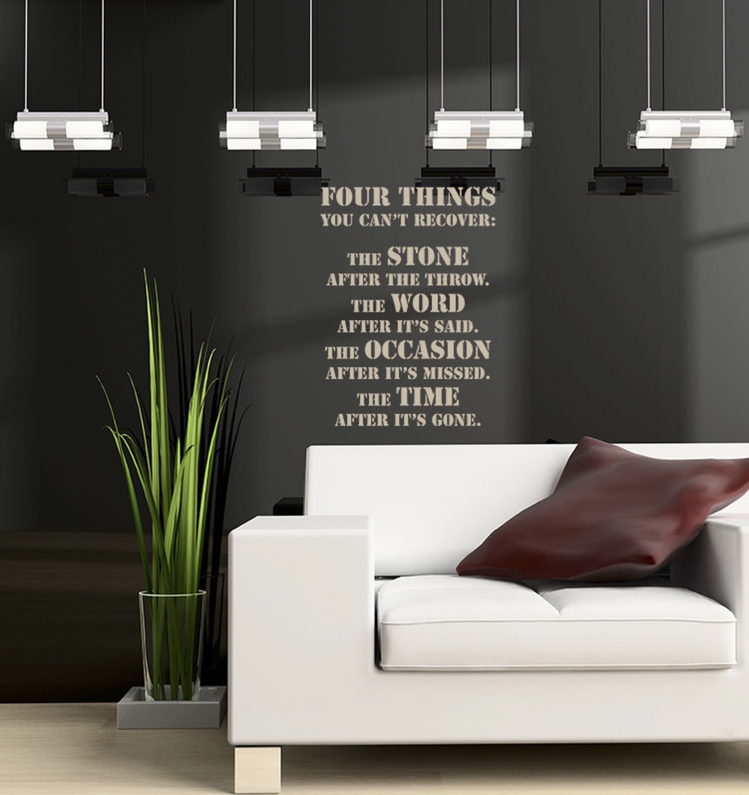 Wandtattoo Four things you can’t recover: The stone after the throw. The word after it’s said. The occasion after it’s missed. The time after it’s gone.