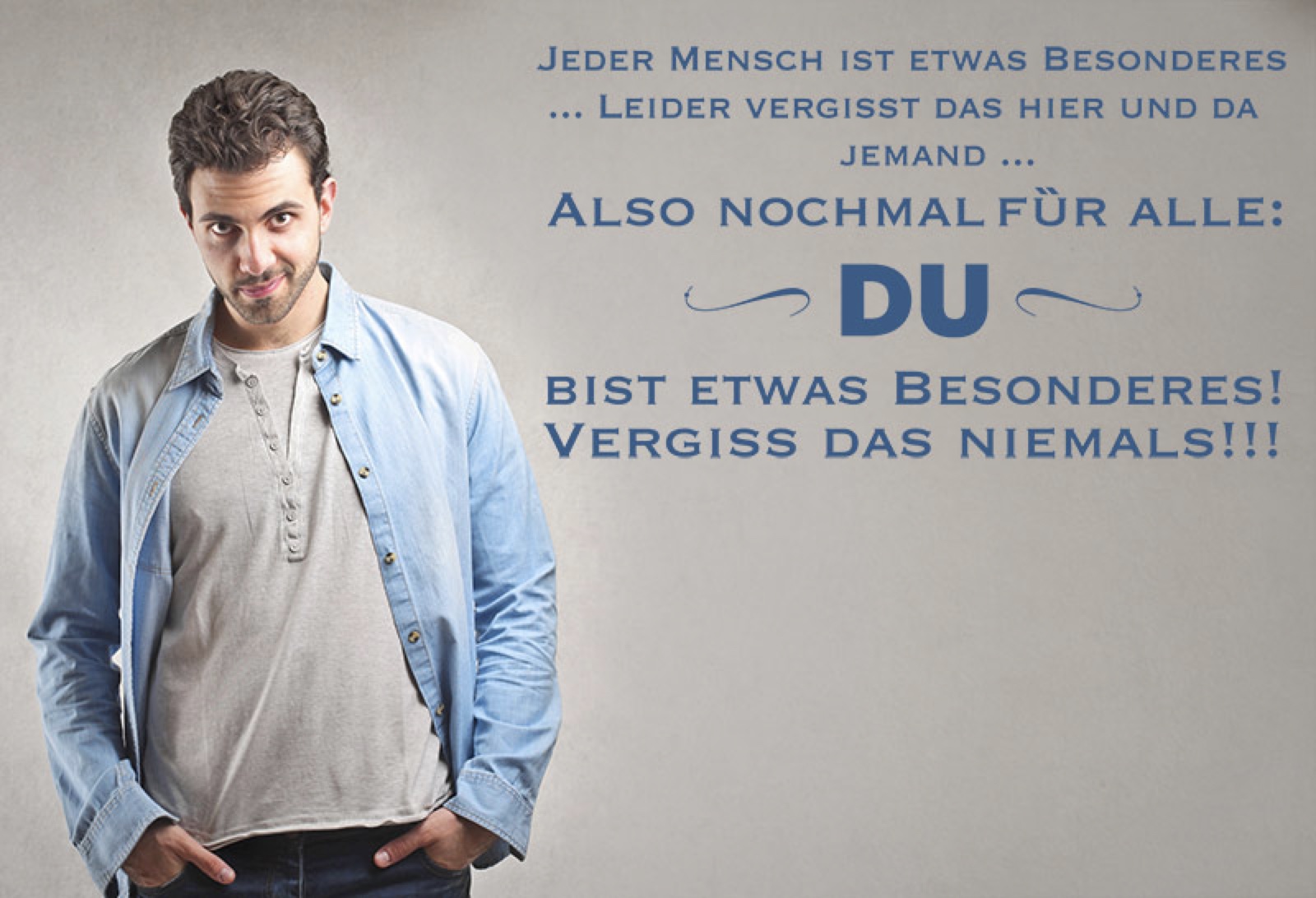 Wandtattoo Jeder Mensch ist etwas Besonderes ... Leider vergisst das hier und da jemand ... Also nochmal für alle: - Du - bist etwas Besonderes! Vergiss das niemals!!!
