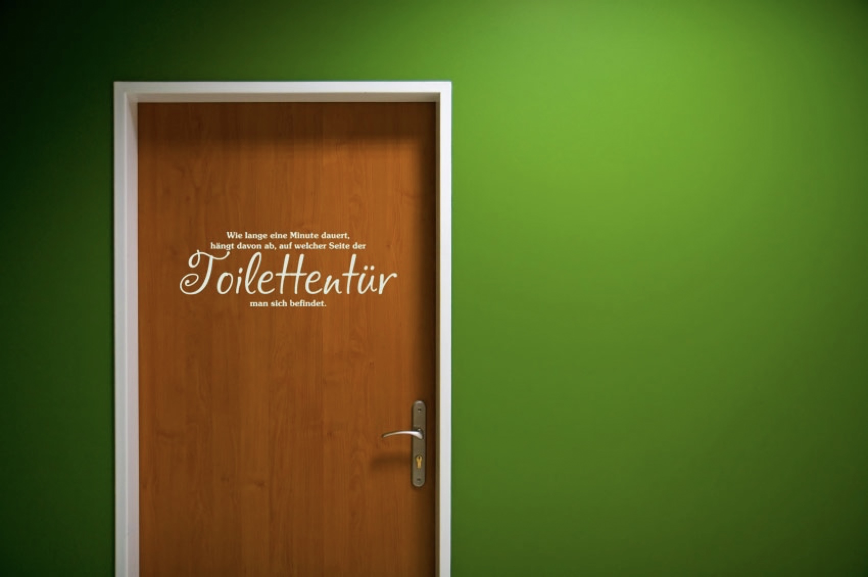 Wandtattoo Wie lange eine Minute dauert hängt davon ab, auf welcher Seite der Toilettentür man sich befindet.